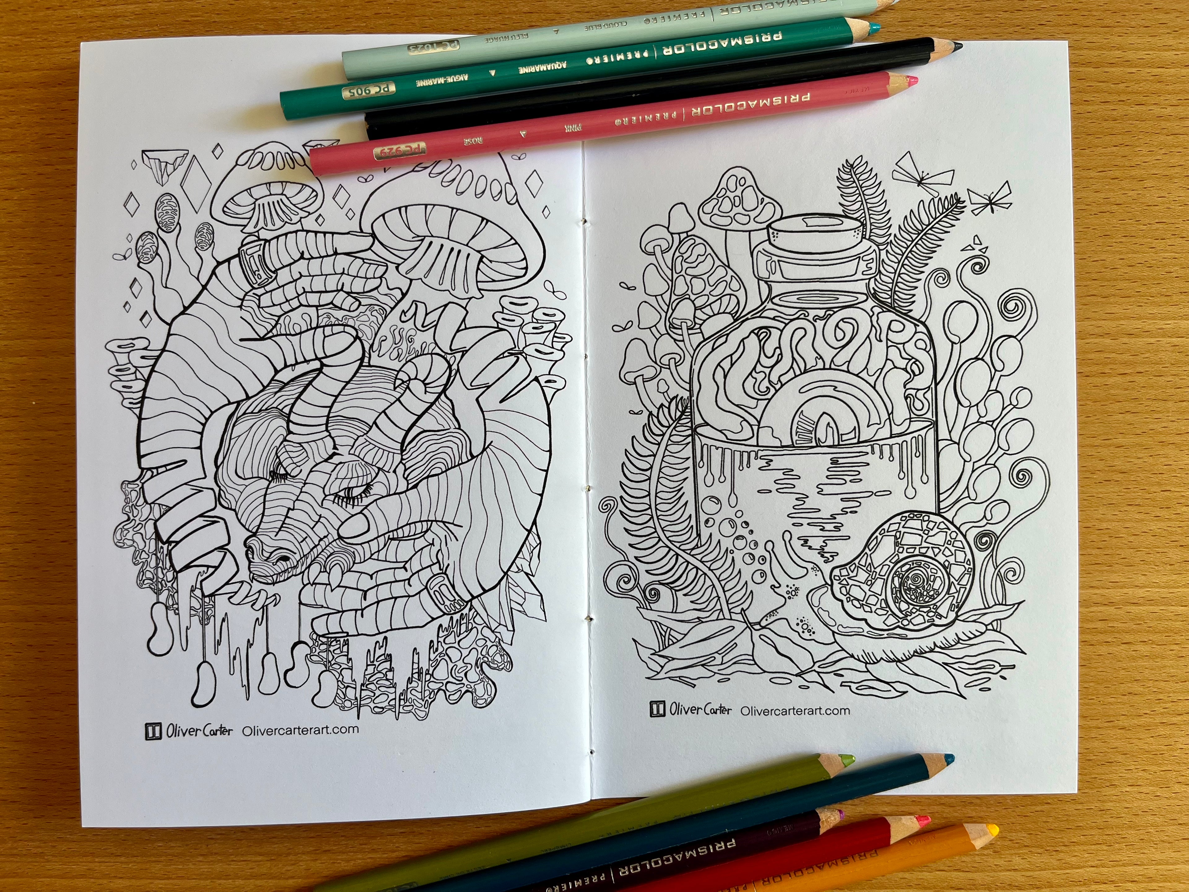 Each coloring book is printed on quality paper and hand-stitched using wax thread.