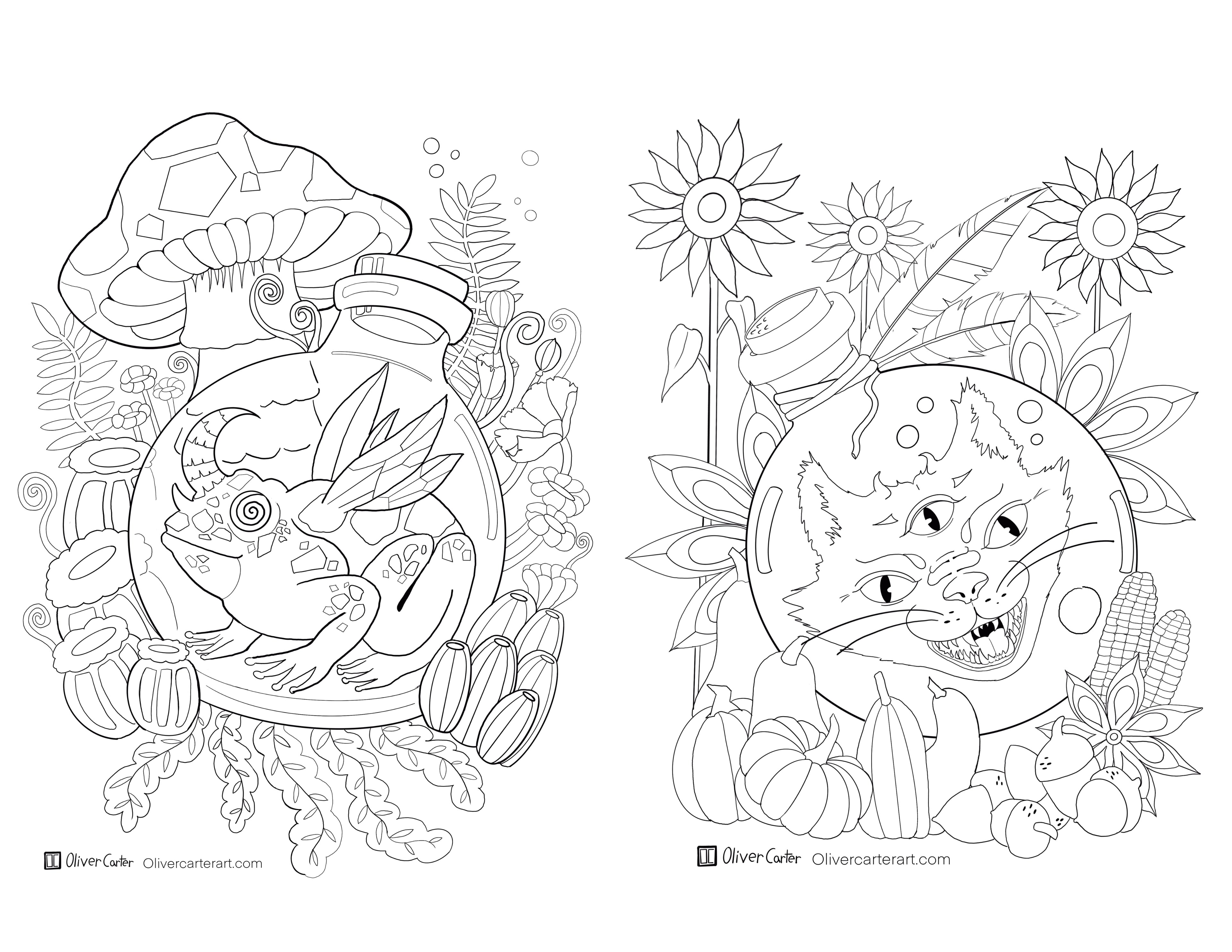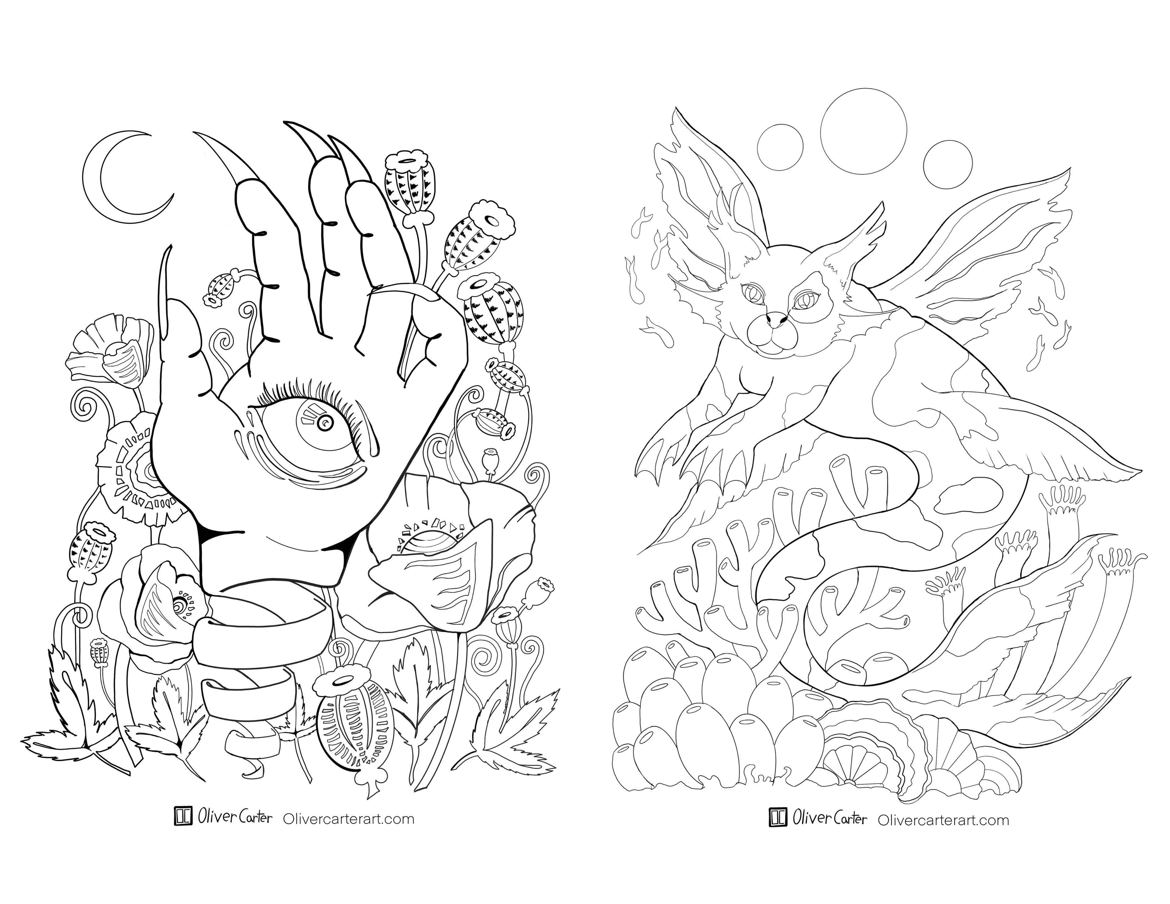 I picked some of my favorite paintings and sketches and turned them into 18 unique designs for coloring.